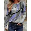 Damski elegancki T-shirt w paski z nadrukiem drukowany 3D Moda Długi rękaw Okrągły dekolt Regularny Top Wakacje Weekend Wiosna Jesień