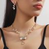 3 szt. Damski modny naszyjnik z małym kwiatkiem i kroplą wody, kolczyki, zestaw z cyrkoniami, prezent na ślub, bankiet, przyjęcie, festiwal