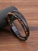 Bransoletka męska wielostylowa z kamienia wulkanicznego lub kamienia tygrysie oko oraz skóry PU, trzywarstwowa, biznesowa, rekreacyjna, prezent dla mężczyzn