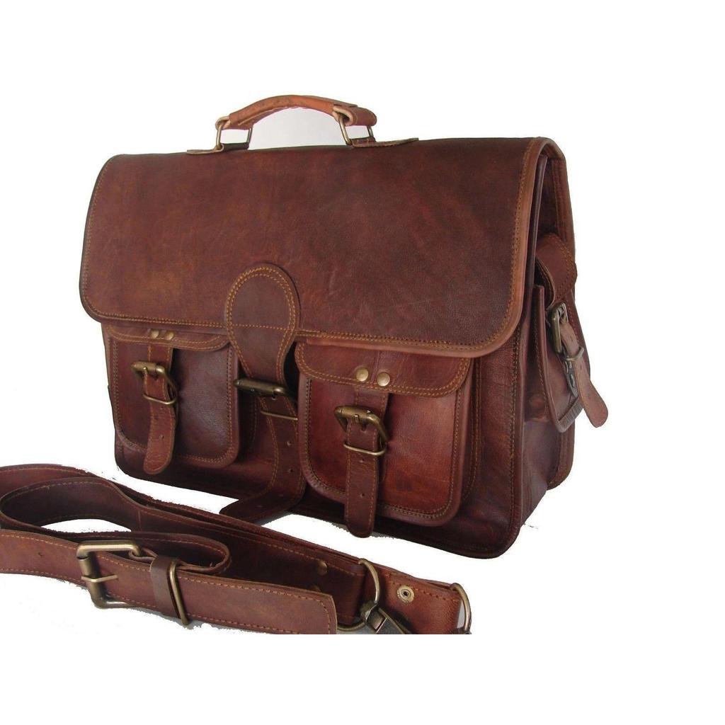Men's Genuine Vintage Brown Leather Messenger Bag Shoulder Laptop Briefcase