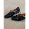 Sheepskin~ Square head pleated hollow Mary Jane shoes women's bow temperament low heel single shoes light mouth small leather shoes