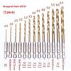 13-częściowy zestaw wierteł krętych z chwytem sześciokątnym powlekanych tytanem (1,5-6,5 mm) - Stal szybkotnąca do obróbki drewna