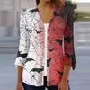 Damska Luźna Codzienna Drukowana Koszula Zapinana na Guziki z Rękawem Siedem Ósmych Kardigan Top