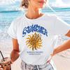 Sun and Coconut Tree Print Short-sleeved T-shirt Casual and Versatile Style Suitable for Summer Daily Wear and Going Out