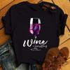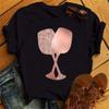 New Rose Gold Wine Glasses Tshirts Women Short-sleeve Tee Shirt Wine Glass Funny T Shirts 90s Ulzzang Female Black Tops Tees