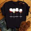 Wine Glasses Printed Tshirts Women Summer Short-sleeve Wine Glass Funny Casual T Shirts Female Black Tops Woman Clothing