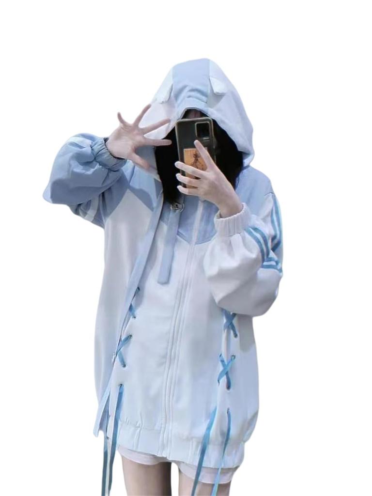 KEWJYUE Long Sleeve Hoodie with a Yami Kawaii Loose Fit Cute Harajuku Subculture Jacket with Ribbon Women's Angel-inspired Sweatshirt, Style, (Size L)