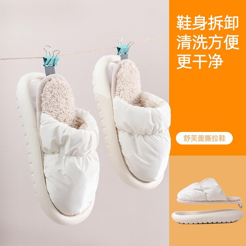 Slippers cotton slippers women wear Velcro can be torn couple thick bottom autumn and winter indoor waterproof non-slip cotton mop