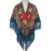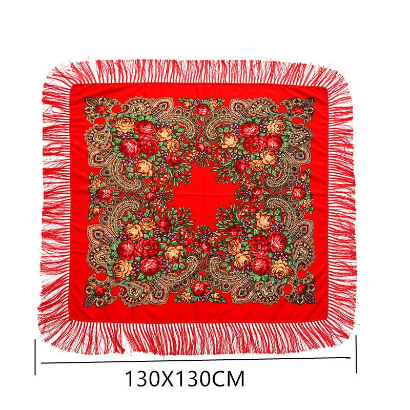 130*130Cm National Square Scarves Women'S Luxury Peony Flower Print Fringed Shawl Handkerchief Cotton Head Wraps