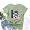 Cartoon Bear Cotton T-Shirt Short Sleeve Round Neck Women 2d Print Tops