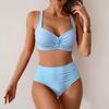 2025 Seksowny Niebieski Strój Kąpielowy na Ramiączkach Kobiety Zestaw Bikini z Wysokim Stanem Brazylijski Strój Kąpielowy Damski Krzyżowy Push Up Plażowy Strój Kąpielowy