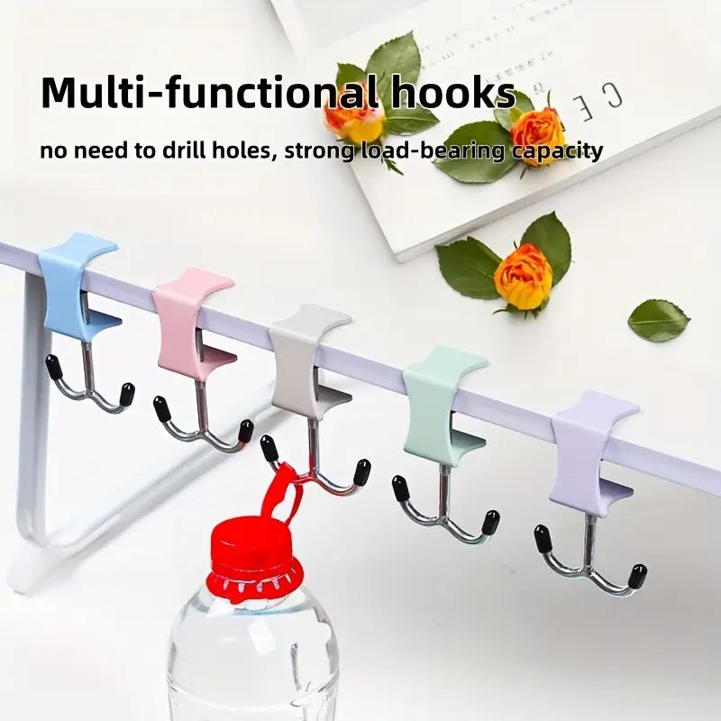 1PCS Multifunctional Double Hook School Bag Hook Desktop Detachable Mobile Bag Hanging Device Desk Side Bag Hook Punch-free Strong Bag Hook