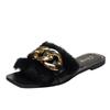 Moda Moda Łańcuch Pluszowe Futrzane Puszyste Damskie Sandały Białe Płaskie z Zewnętrznymi Damskimi Klapkami Futro Letnie Buty na Plażę Duży Rozmiar 37-42