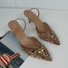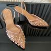Modne Eleganckie Party Wysokie Obcasy Damskie Buty Błyszczące Cekiny Koraliki Siateczka Markowy Design 2025 Lato Szpilka Biurowa Dama Luksusowe Sandały