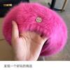 Hairy Long Rabbit Hair Beret Female Autumn and Winter Face Small Plush Hat Big Head Circumference Painter Hat
