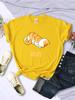 The little orange cat bows his head and refuses Printed T-Shirts Women Funny Cartoons Short Sleeves Soft Summer T Shirt Female