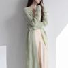 Mohair hollow knitted cardigan women's thin spring and autumn sunscreen loose solid color lazy wind medium and long coat