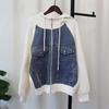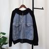 Autumn and winter new hooded splicing denim sweater jacket zipper knitted double-sided cardigan women