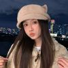 Korean Cute Cat Ear Plush Beret Autumn and Winter Casual Face Showing Small Warm Hat Fashionable Versatile Painter Hat New