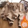 Dziecięcy Sweter Zestawy Sportowe Chłopcy Stójka Litera Garnitur Jesień Zima Dzieci Luźny Moda Casual 2 Części 4-14L