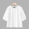 ZANZEA Damska codzienna bluzka z okrągłym dekoltem, luźna, z rękawem 3/4, gładka