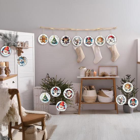 Yousheng Christmas Wooden Ornaments Cute Snowman Santa Reindeer Penguin Christmas Tree Ornament for Xmas Home Holiday Party Supplies