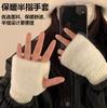 Pluszowe rękawiczki studenckie z norki, ciepłe i zimne rękawiczki damskie zimowe damskie czarno-białe urocze biurowe na pół palca