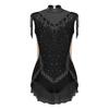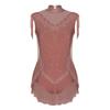 Dziewczęce cekinowe body do tańca z siateczkowym patchworkiem i spódnicą z frędzlami, niewidoczny zamek z tyłu, kostium sceniczny