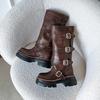 Wersja ze skóry bydlęcej~ Brytyjska klamra do paska platforma kozaki rycerskie damskie wysokie buty ale za kolano buty westernowe skóra naturalna wszechstronne buty
