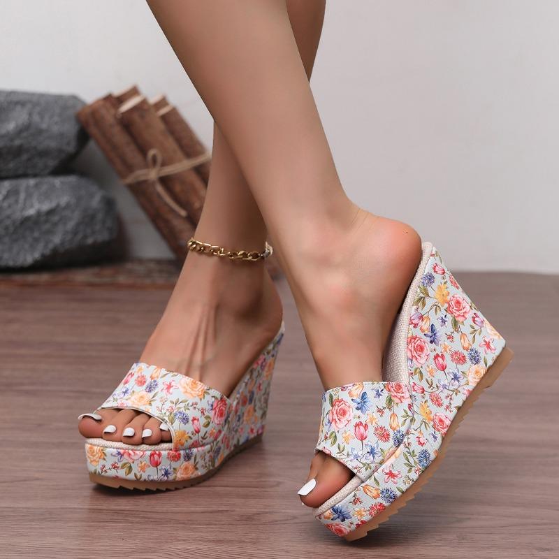 Large size thick-soled wedge heel muffin casual slippers women's summer new high-heeled color matching fashion fish mouth shoes