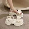 Letnie sandały online z kokardą, perłową klamrą i na wysokim obcasie