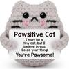 Handmade Knitted Cat Doll With Positive Card Home Room Decoration Funny Crochet Emotional Support Cat Ornament Christmas Gift