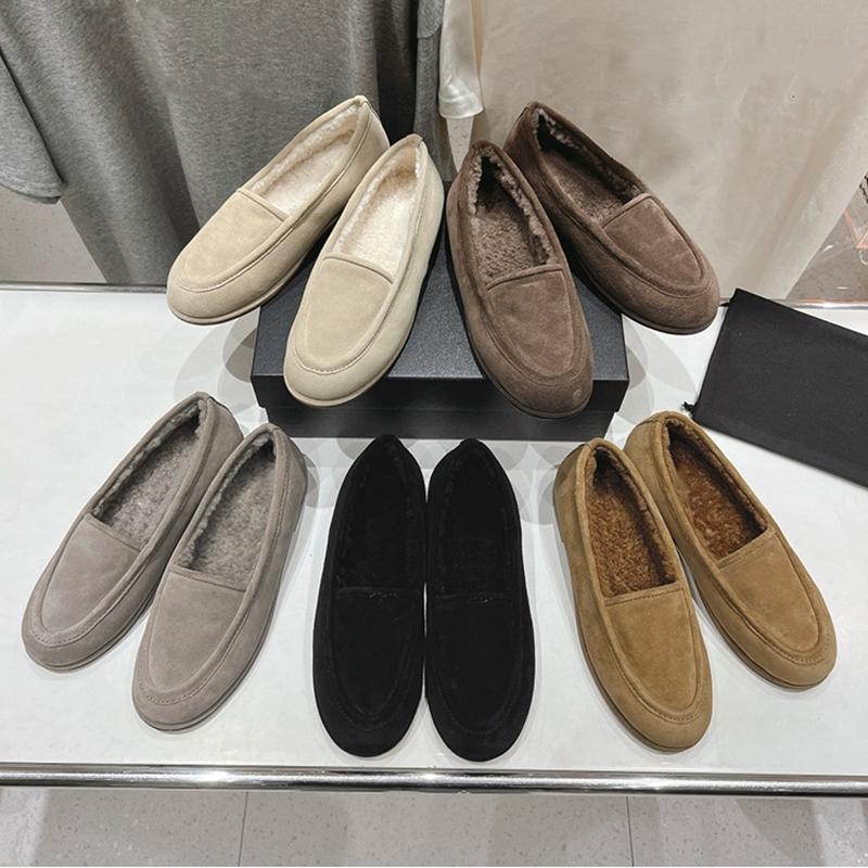 Buty zimowe Damskie Nowa Wełna Jednoczęściowe Damskie Mokasyny Niski Obcas Modne Casualowe Wsuwane Ciepłe Buty Damskie
