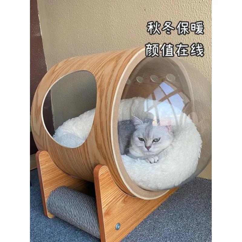 Net red space capsule transparent cat delivery room four seasons universal closed winter cat house solid wood capsule cat litter