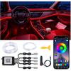 Kolorowe Oświetlenie Ambientowe Samochodu z Bezprzewodową Aplikacją/Pilotem RF Zestaw Oświetlenia Wnętrza LED do Samochodu Ciężarowego SUV RV Łodzi Dom Sypialnia Dekoracja na Imprezę