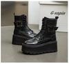 Modne Krótkie Botki ze Skóry PU Dla Pani 2025 Nowe Jesień Zima Buty Zwiększające Wysokość 8CM Mały Rozmiar 34 Kobiety Gruba Podeszwa Casualowe Botki