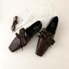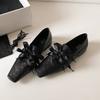 Fashion Retro Square Toe Leather PU Women Loafers Comfort Low Heel Bow Tie Designer Mules Casual Shoes for Women Elegant Ballet Flats