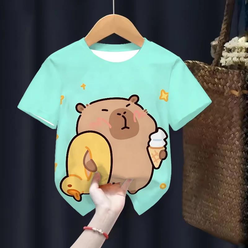 Capybara Kids Clothing Tees Summer Printed Cartoon Fashion Short Sleeve T-shirt Girls Loose Tops T Shirts