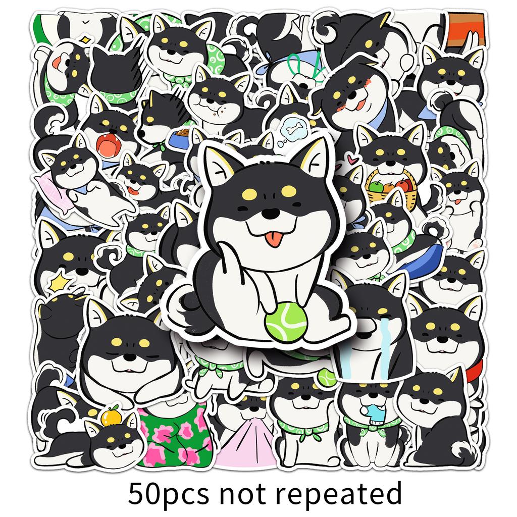 50 Black Chai Cartoon Stickers Cute Hand-painted Dog Shiba Inu Hand Account Decorative Water Cup Mobile Phone Gum Stickers