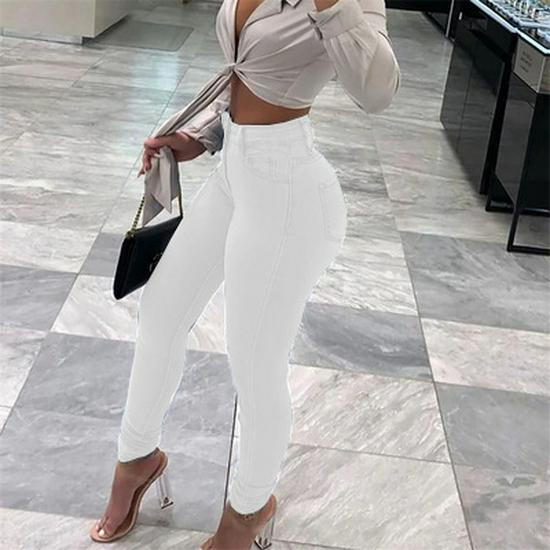 2025 Wiosna Plus Size Dżinsy z Wysokim Stanem i Dziurami - Jednokolorowe Spodnie Damskie