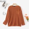 ZANZEA Damskie swetry jesienne z okrągłym dekoltem i długim rękawem, dziergane pulowery