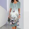 Modna codzienna sukienka damska z okrągłym dekoltem i cyfrowym nadrukiem 3D w kwiaty, w dużym rozmiarze, długość do kolana, wykonana z włókna poliestrowego, o luźnym kroju w talii