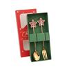 2/6 szt. Świąteczna łyżeczka do mieszania i złoty zestaw widelczyków do deserów z pięcioramienną choinką na Boże Narodzenie, na przyjęcie w Wigilię, prezent, zastawa stołowa