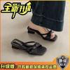 Xiaoxiangfeng high-heeled slippers thick-heeled fairy style French small sandals women's shoes summer with skirts one-word sandals