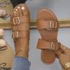 New large-size buckle flat-bottomed slippers women's open-toed retro wind beach slippers