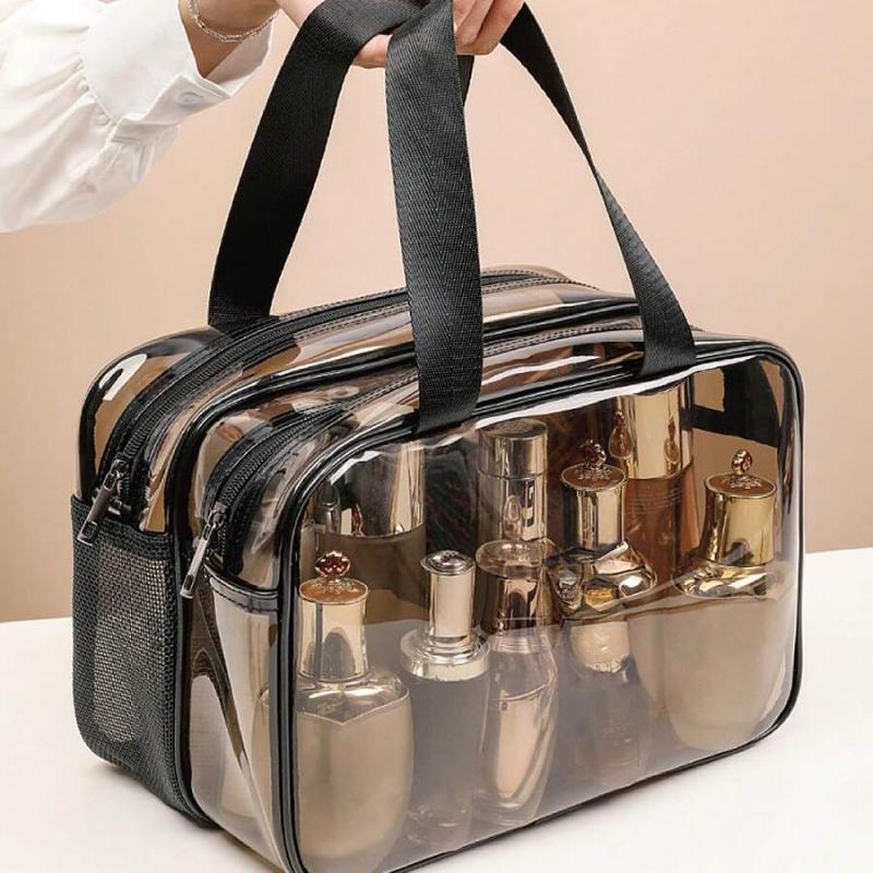 1PC Makeup Travel Bag Make Up Brush Bag Toiletry Bag Transparent Makeup Bag Made of PVC Material, Hand-Held Toiletry Bag, Cosmetic Storage Bag