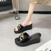 Slope heel cool slippers women's summer 2025 new muffin high heel heightened thick sole chain one-word outer wear sandals