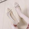 2025 new single shoes women's shallow mouth mesh lace breathable flat-bottomed casual versatile mesh shoes round head soft sole maternity shoes