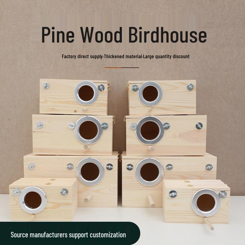 Klatka dla ptaków z drewna sosnowego w różnych rozmiarach: Drewniany budka dla papugi z otwieranym dachem