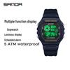 Sanda Teen & Men Multifunctional Waterproof Fashion Square Alarm Clock Watch
